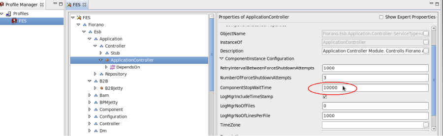For shutdown, a component which has CCP feature enabled would initiate orderly shutdown of the component as soon as a INITIATE_SHUTDOWN command is received from the Peer Server and terminates itself once the cleanup is done. A component can send intermediate status events to indicate the progress of shutdown process which are logged by the server. Peer Server waits for component process to terminate for a configured interval of time. If the component process is not terminated within the configured time, the Peer Server will forcefully terminate the component process. This can be configured in FES profile against ComponentStopWaitTime property on ApplicationController node at path FES > Fiorano > Esb > Application > Controller > ApplicationController