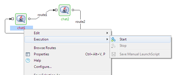 To launch a service (which is not running) in an Event Process (which is running), right-click the component, go to Execution and select Start from the menu list.