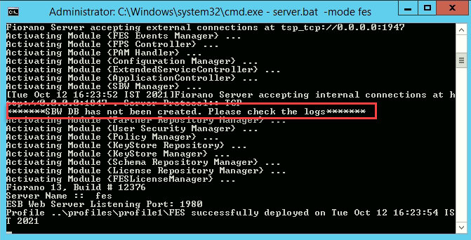 If the server is not connected, an error message saying "SBW DB has not been created" appears in the server console while restarting.