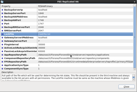 - The dialog box that gets opened contains properties for both FES HA Primary and FES HA Secondary.