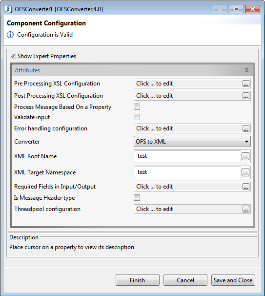 Scenario 2 illustrates conversion of XML data to OFS. Create Scenaro 2 by making changes in Scenario 1 — change the Converter property in the OFSCOnverter CPS from "OFS to XML" to "XML to OFS".