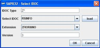 - Select IDOC: When you click the ellipses button, a dialog box appears asking for IDOC TYPE, Version and a load button which loads IDOCs of type mentioned.